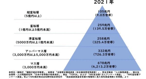 返信先:@kuha_721億円=富裕層の定義を広めた、野村総研の富裕層調査でどう定義されるかは肝だと思います。ピラミッドの定義が変わると大騒ぎでしょうね。