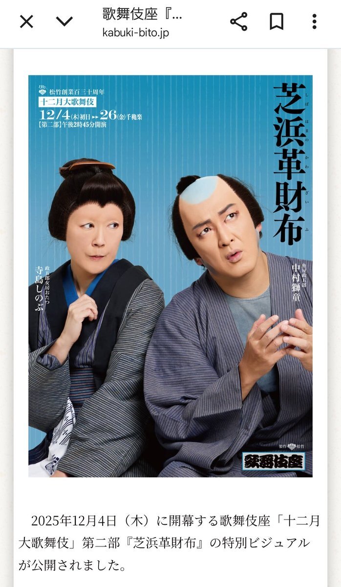2025年12月の歌舞伎座「芝浜革財布」寺島しのぶさんだし見に行きたい!今のところ行けるか未定なので、行きたい思いを、今日も今日とて解説記事に注ぎました😊6月の松緑さん、萬寿さんもほっこりしてすきだったなぁ。gokigen-no-moto.net/345/