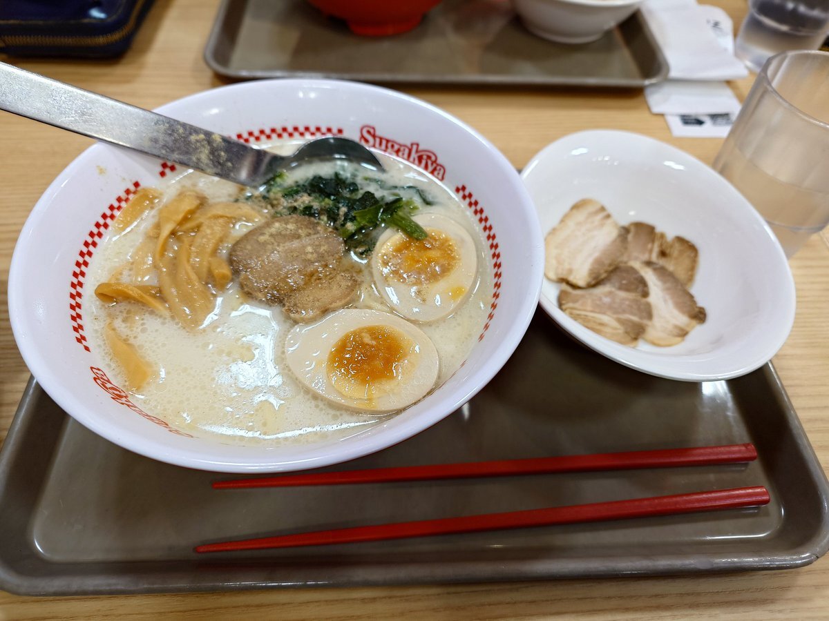 ソウルフードスガキヤ。春日井市民の私は大昔 清水屋で食べてました。"特製ラーメン+チャーシュー4枚トッピング"を注文するより"肉ましラーメン+卵トッピング"の方が同じ内容で少し安いそうです。 #寿がきや #スガキヤ pic.x.com/mZ0Y1EV74x