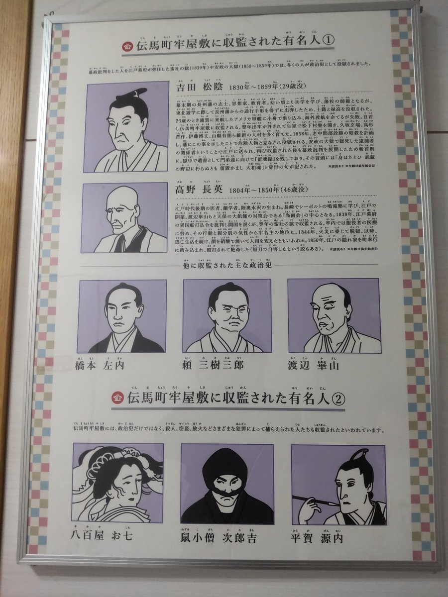 返信先:@hdFeYt3xB8tJu他2人ひぃっ…!😭 小伝馬町牢屋敷のwikipediaみたら壮絶なこと書いてあって卒倒そうでした😱 鐘もそうですが、囚人の人員削減のくだりがやばすぎました… 吉田松陰もここで命奪われてしまったんですね。 昼間歩くと何とも思わなかった街並みでしたが、歴史知ると怖いかもですね💦