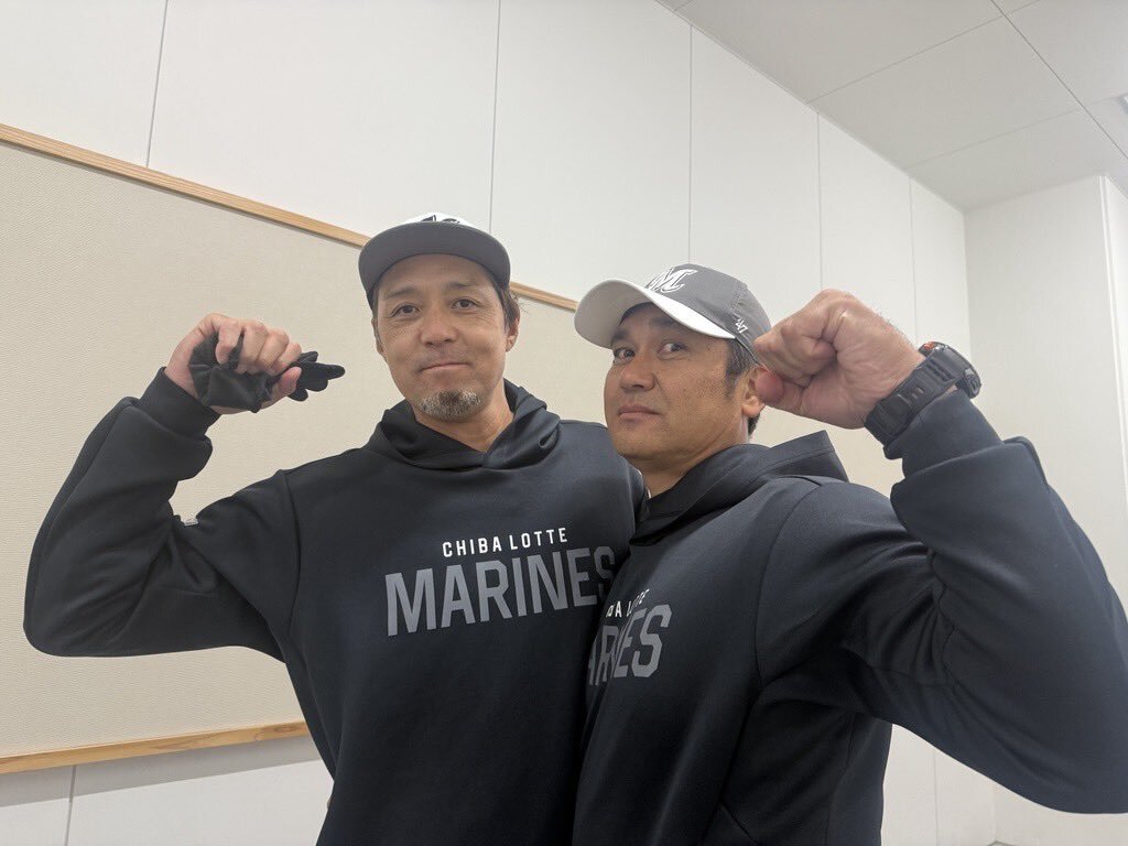 頑張りましょう 👏👏👏💐💐💐🎉🎉🎉🎊🎊🎊㊗️㊗️㊗️ 本日、 #小林宏之 投手コーチが合流しました。 #黒木知宏 投手コーチと小林投手コーチ。 #chibalotte #広報 search.app/KC8x9