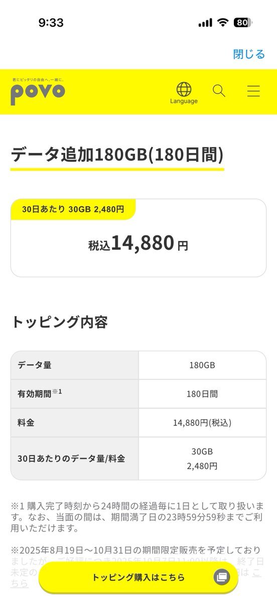 本当は180GB/180日間や360GB/365日間のトッピングを使えばいいのかもしれないけど、それだと一度に支払う金額が高くなるし… 就労継続支援A型事業所の給与が月8万円くらいだから、この金額を一度に支払うのは大変なんだよね… 他の銀行口座に障害年金が月7万円くらい振り込まれるけど、違う銀行だし… pic.x.com/xHBb3l1Cvj x.com/naoki_1230y/st…