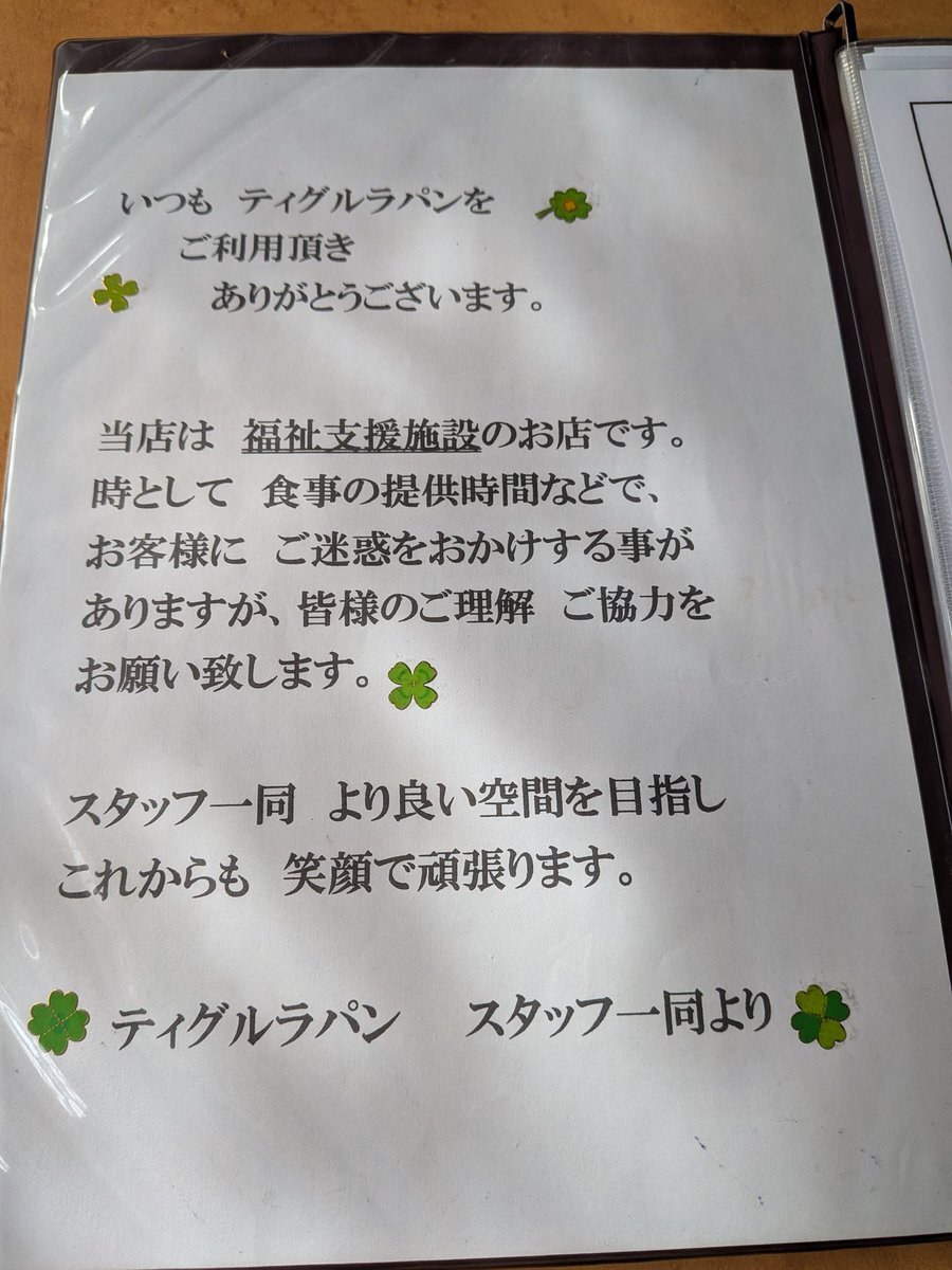 岐阜北鶉に午前中に用事があり帰りにこんなお店に寄りました。 第1博天堂・喫茶 ティグルラパン(就労継続支援A型事業所) 障がいを持った方々が一生懸命働いていました。 私はエビフライ定食をいただきました。 pic.x.com/G40JPAvXXN