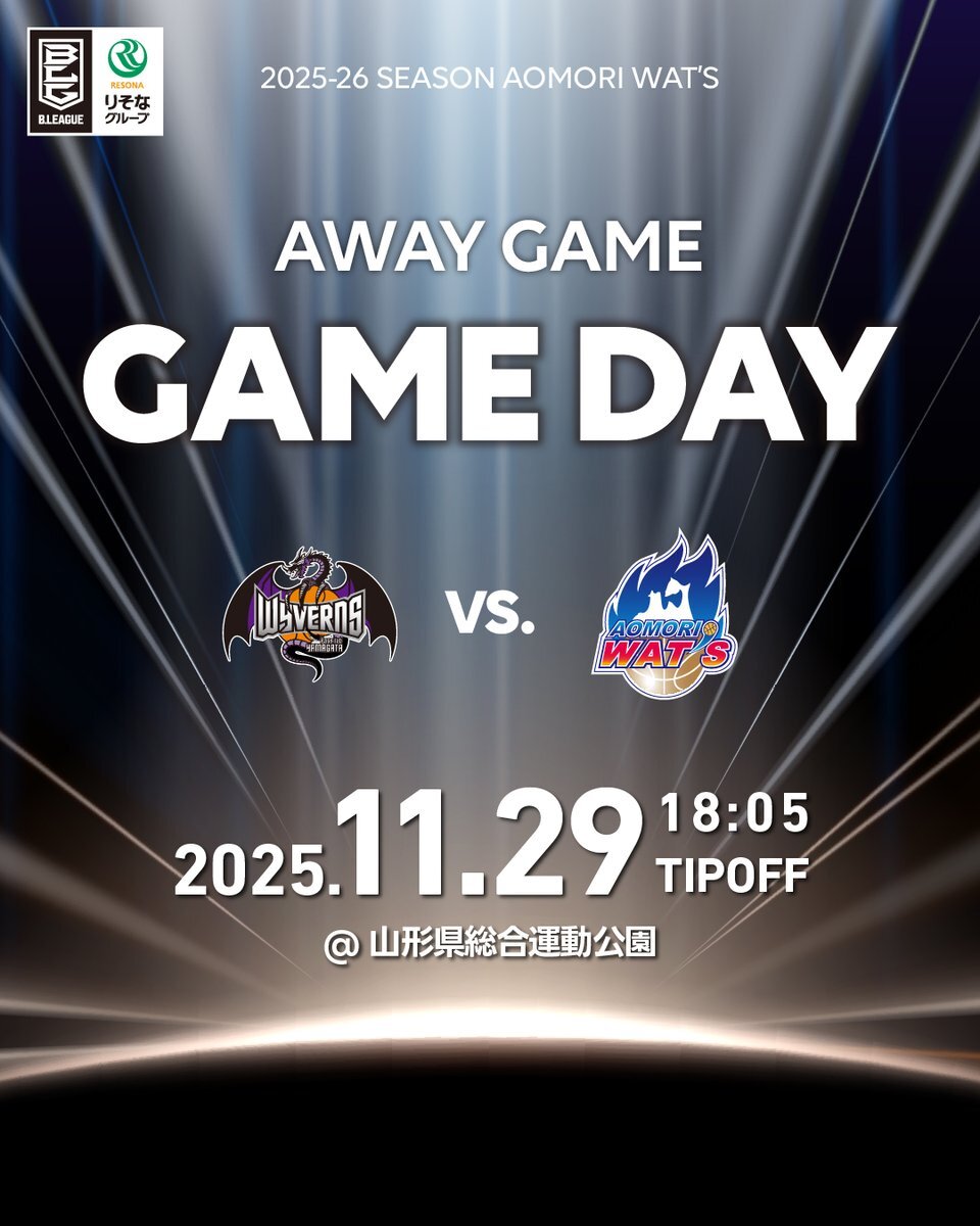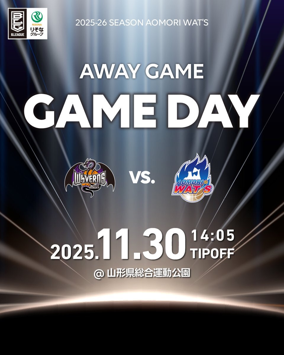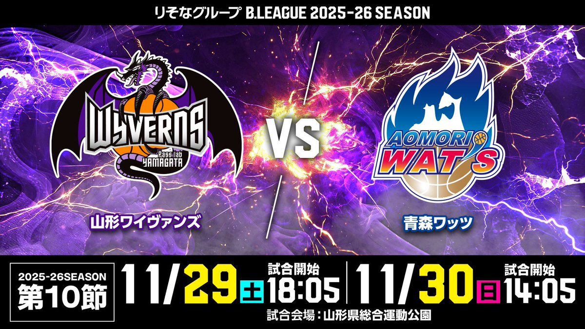 / 🏀GAME DAY🏀 \ りそなグループB.LEAGUE 2025-26 SEASON 第10節 GAME1 「高畠町応援デー」 「モンテディオ山形同日開催対象試合」 モンテディオ山形観戦チケット🎫をお持ちの方は2F自由席が500円!! 🗓️11月29日(土) 🕑15:30開場/ 18:05 TIP OFF 📍山形県総合運動公園 🆚 #青森ワッツ pic.x.com/URcGBa6u3V