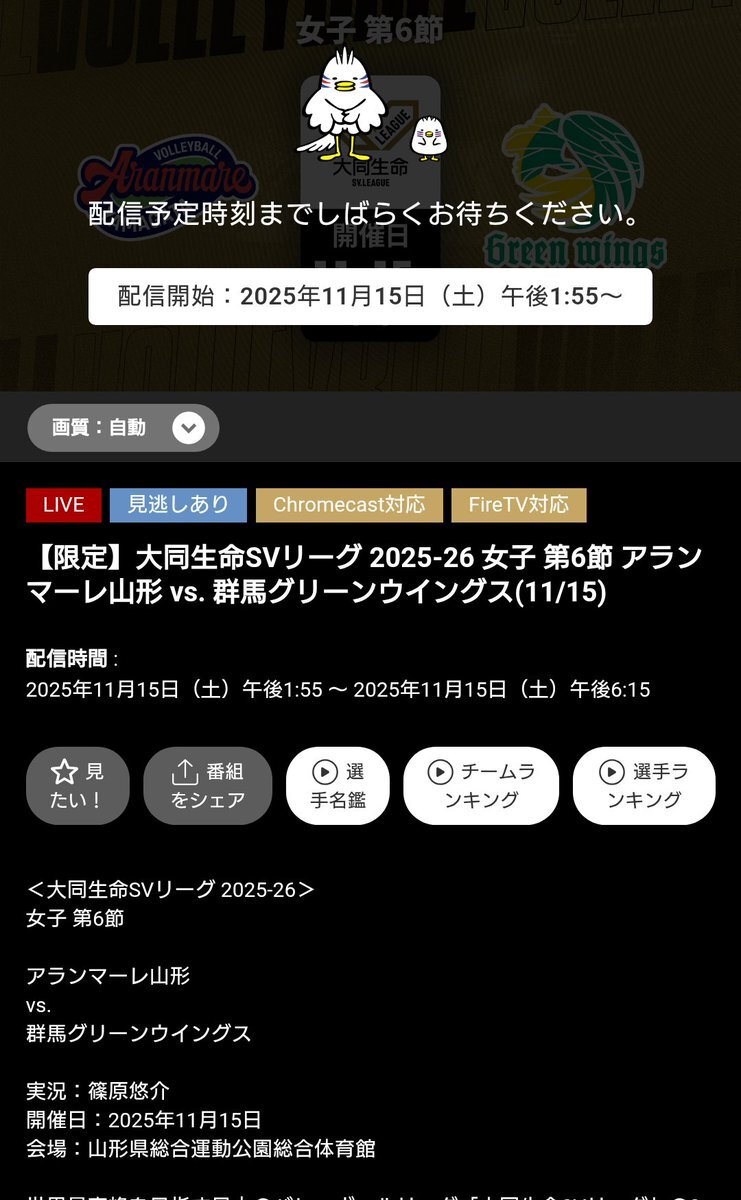 #jsportsオンデマンド さん】※要ログイン 《 #大同生命SVリーグ 女子 第6節:GAME2》🆚群馬グリーンウイングス( #山形県 #天童市 🎪山形県総合運動公園総合体育館) ※HOME GAME jod.jsports.co.jp/p/volleyball/s… #アランマーレ山形 #Prologue pic.x.com/HRkoW5BEV7