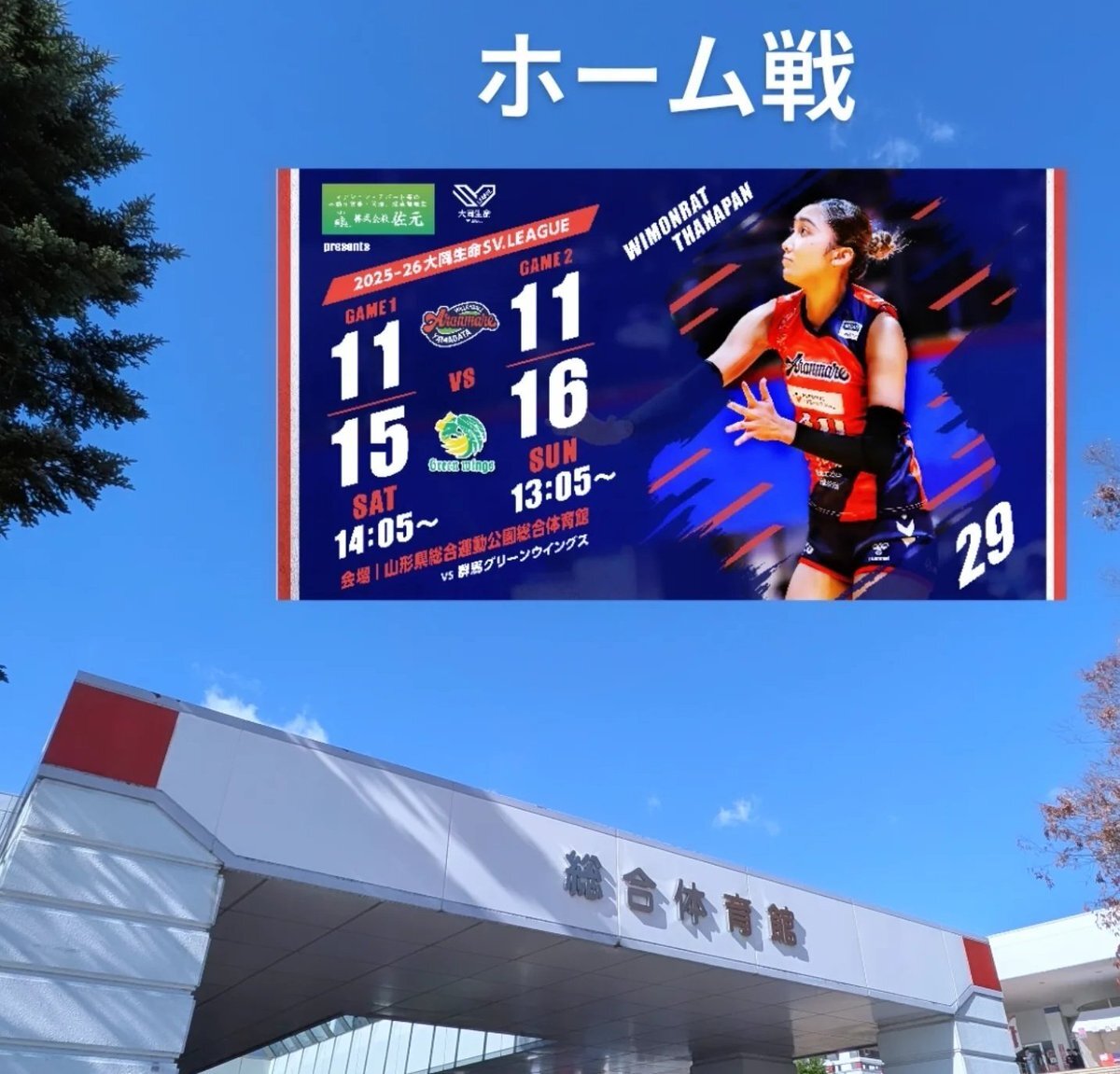(先週末の試合の感想をツイート出来ずにいて、今週末もまた "週ナカ" の(水)になってしまいました💦 あぁ、"自分の時間" を増やしたい。。。) 先週末(土)(日)の2025-26 #大同生命SVリーグ 女子第6節は、前節に続いて #山形県 #天童市 の🎪山形県総合運動公園総合体育館でのHOME GAMEでした。