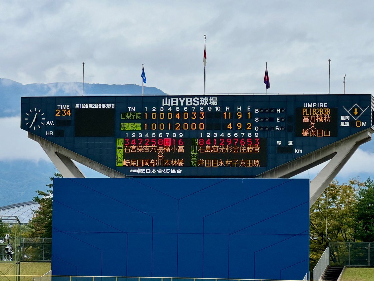 <令和7年度秋季関東地区大会> 山日YBS球場 我が母校・山梨学院高校野球部は、 ◇準決勝◇ 山梨学院11ー4 専大松戸 山梨学院が専大松戸を11対4で コールド勝ちで決勝進出⚾️✨ 決勝も頑張ります‼️ 皆さんのご声援よろしくお願いします🙇‍♂️ pic.x.com/TnCgOUMqpS