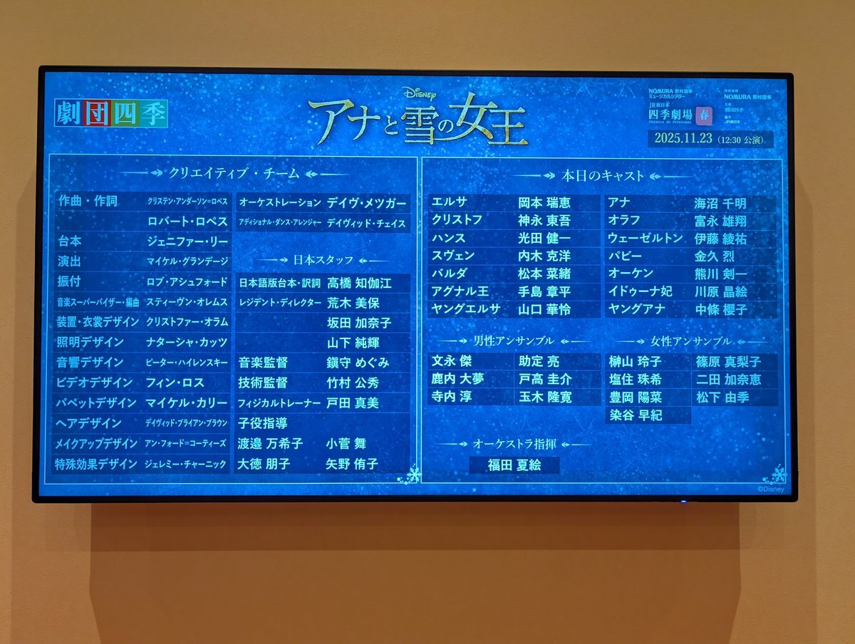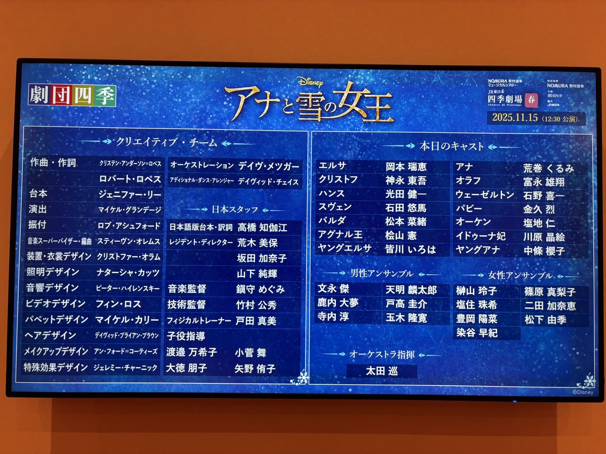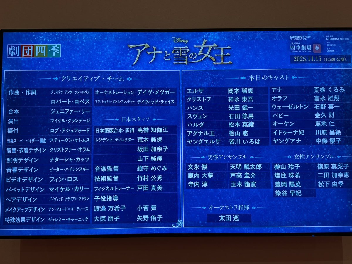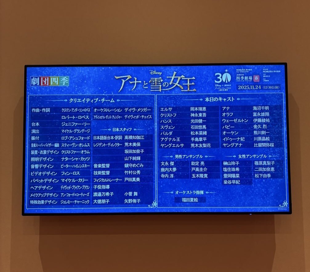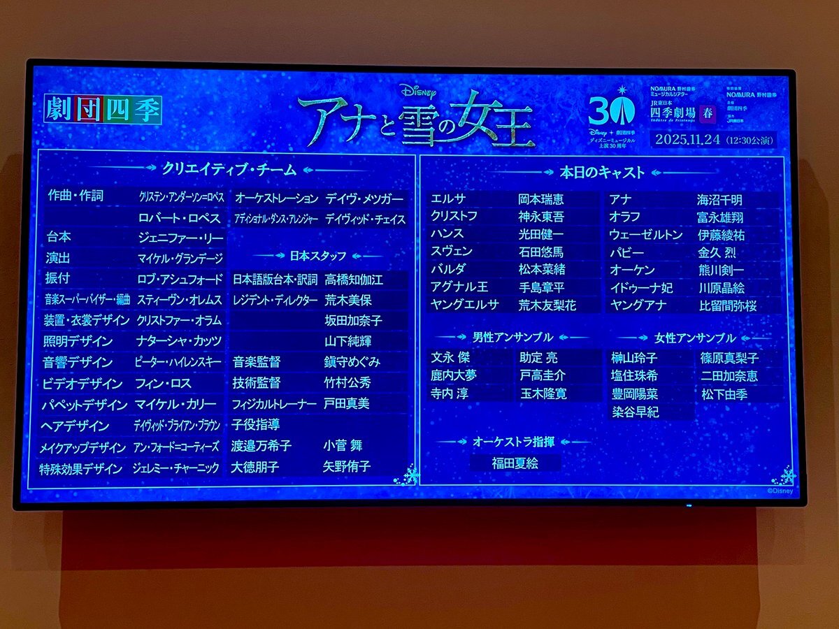 2025年観劇9回目 #アナと雪の女王 観劇❄️ 夜勤明けだし観劇どうするか迷ったけど今日は四季の記念すべき #ディズニーミュージカル日本上演30周年 でもあるから来た!! で!エルサ役がまさかの岡本瑞恵さん! 4年前初アナ雪観劇した時も岡本さん!