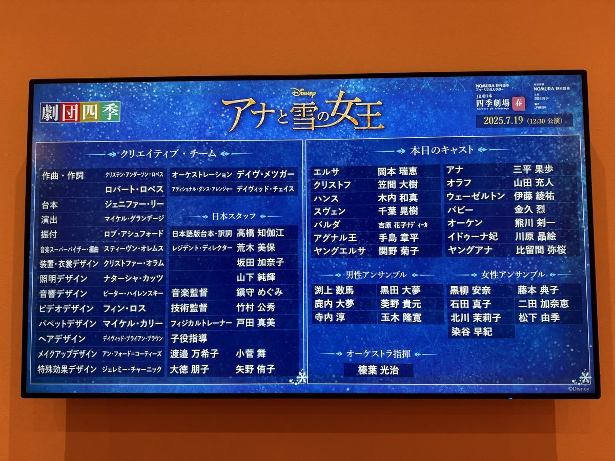 2025年観劇9回目 #アナと雪の女王 観劇❄️ 夜勤明けだし観劇どうするか迷ったけど今日は四季の記念すべき #ディズニーミュージカル日本上演30周年 でもあるから来た!! で!エルサ役がまさかの岡本瑞恵さん! 4年前初アナ雪観劇した時も岡本さん! pic.x.com/vTiWsQB0Ns