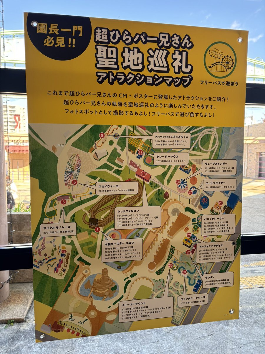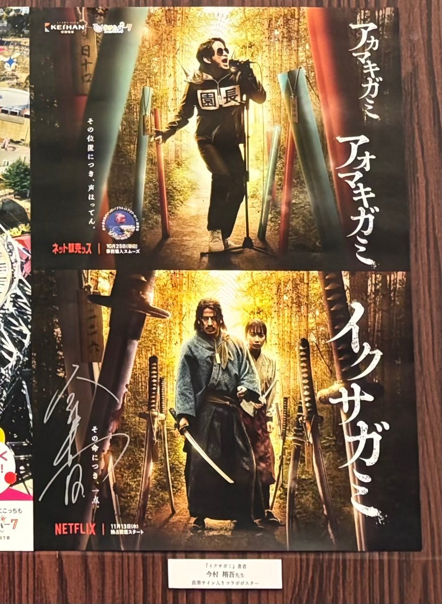 野外ステージは太陽がさんさんと降りそそぎめっちゃ暑かったし顔が焼けた…でも晴れて良かったよー 芝生席とその上の通路席はパイプ椅子が設置されてました ノームショップは激混みで長蛇の列が😅 園長資料室に今村翔吾さんのサイン入りポスターがありました #岡田一門 #ひらパー pic.x.com/6ISftfd2Pg