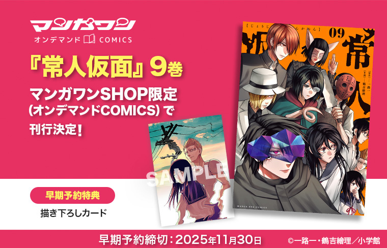 / マンガワンSHOP限定! 『#常人仮面』9巻 発売中📣 \ お得に購入できる早期予約は 2025年11月30日まで👍 早期予約特典として「描き下ろしカード」をプレゼント!💫 ※描き下ろしカードのイラストが一部変更になりました。詳細は商品ページをご確認ください。 ▶️ lnky.jp/FdWcHlD pic.x.com/F2axejU9zV