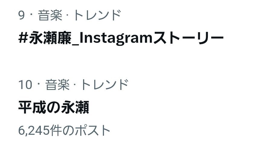 永瀬廉くん Instagramトレンド ━━━━━━━━━━━━━ 9位 #永瀬廉_Instagramストーリー 10位 #平成の永瀬 おめでとうございます🎉 #永瀬廉_Instagramストーリー #KingandPrince @kp_official0523 pic.x.com/v3cejVQ72i