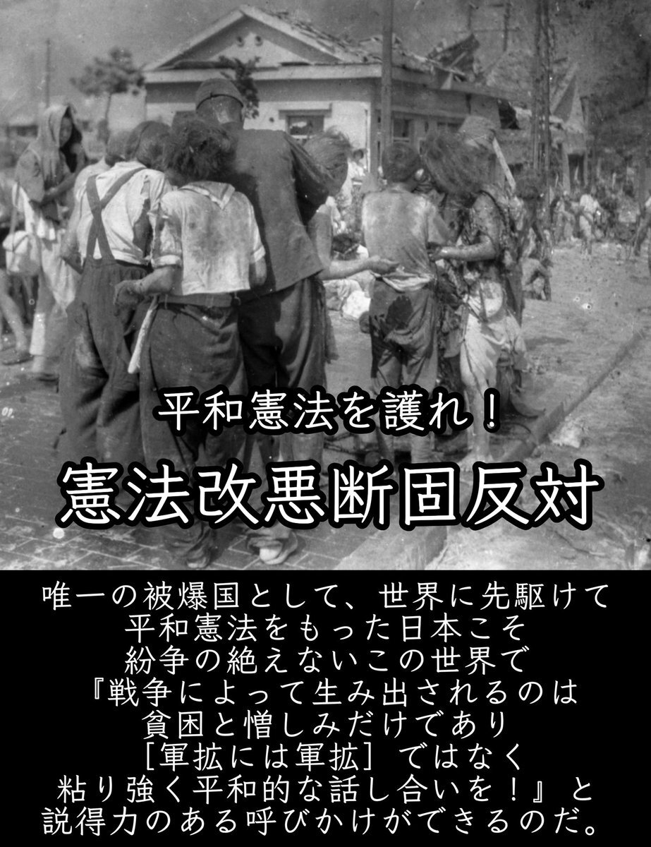 戦争のない現在の日本の平和は、日本国憲法によって支えられている 戦後、今ほど憲法改悪が現実味を帯びたことはない この国の在り方を根本から変えてしまう自民党の憲法改正 今こそ、私達一人一人が声をあげなければならない! #改憲発議させるな #広島平和記念日 @kishida230 pic.x.com/4ZumipA4yz