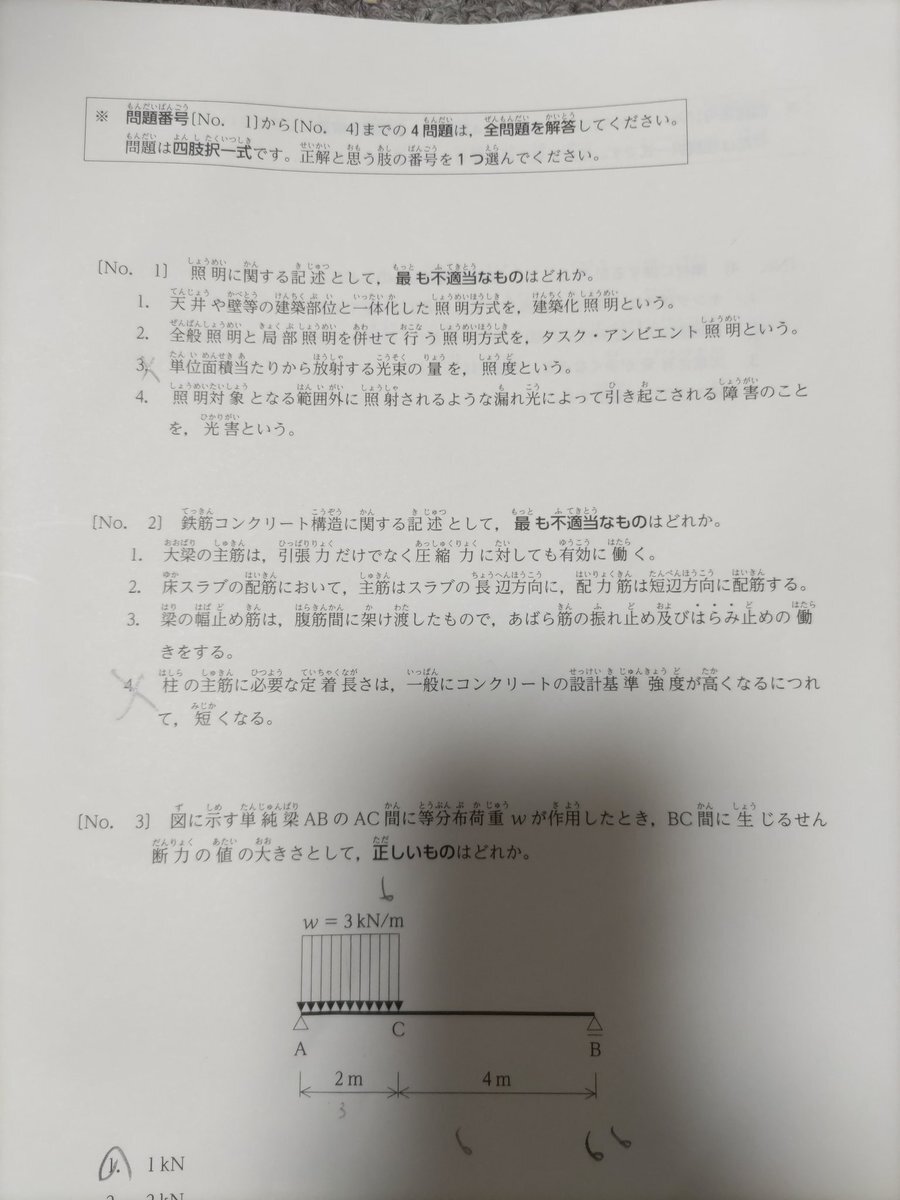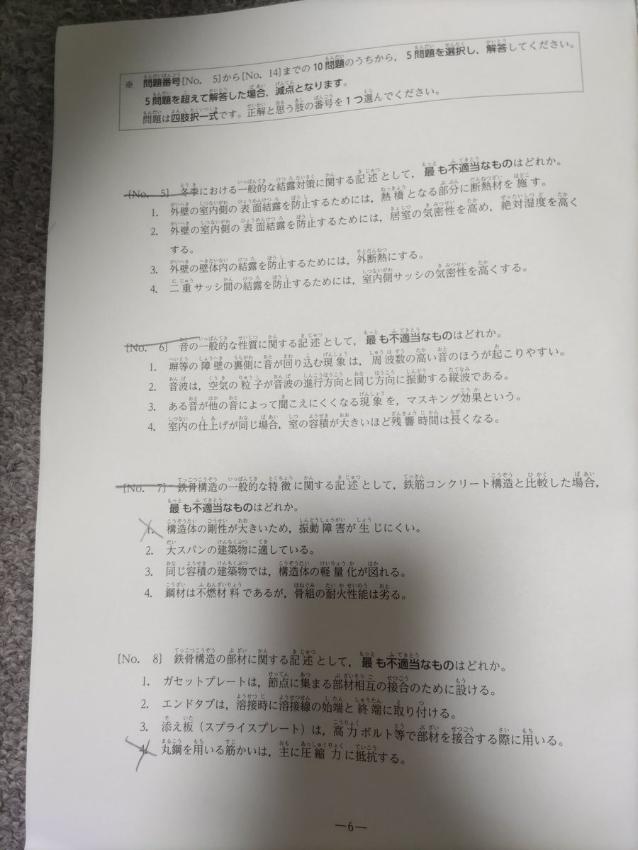 昨日の2級建築施工管理技士2次試験、自己採点したところ記述以外のところは十分なラインの正答ができた。 問題は記述で、事前に考えてたものが全然そのまま書けない内容だったから近隣対策の話とか書いちゃったけど、正解にしてもらえるかな… あんな狭い道の住宅街なので近隣対策必須ではあるけど…