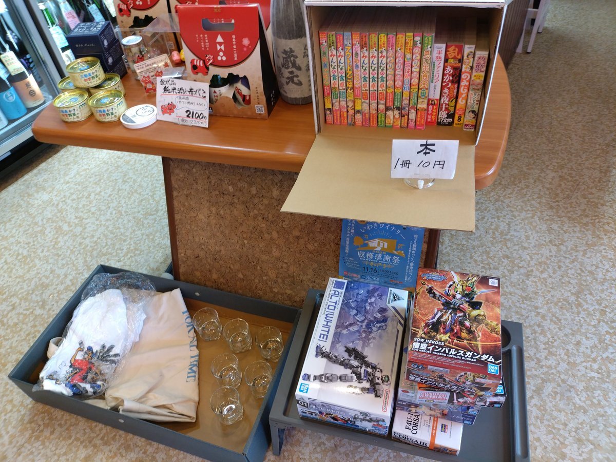 朝から続く雨も少し弱まってきました。あわのや酒店営業中です。 「たいら軒先市」に参加しております、生憎の雨の為、店の中にてフリーマーケット広げております。 玩具・プラモの購入はなるべく小さい子にお譲り下さい〜 ご来店お待ちしてまーす。 #福島県いわき市 #いわき駅前 #たいら軒先市 pic.x.com/ovVNcPnVs3