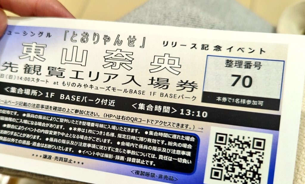 と言うことで東山さんリリイベ 入場してから雨足強まって大変だったw でもミニライブ開始してからどんどん弱まってライブ終了時はほぼ止んだの、さすがは「嵐を呼ぶ晴れ女」だわw お渡し会の度に東山さんほんと凄いなと思うわ、まさに東山プロ 15年ファンやってる最古参だけど接近戦は一生慣れない…😌 pic.x.com/eVB1W3kXsg