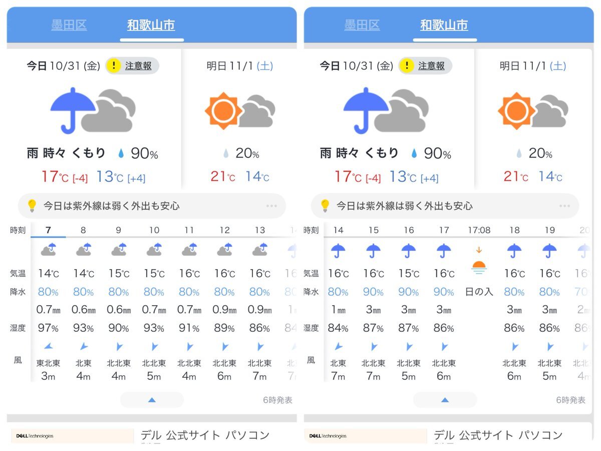 みなさま、おはがんて🐾(˶ᐢᗜᐢ˶) 11/1(土) 【岩手県盛岡市の天気】 天気予報 雨のち曇り 現在の気温 12℃ 最高気温 15℃ 最低気温 10℃ 降水確率 am90% pm30% 風向き 北風 風速 8m/s ⚠️雷注意報 ⚠️強風注意報