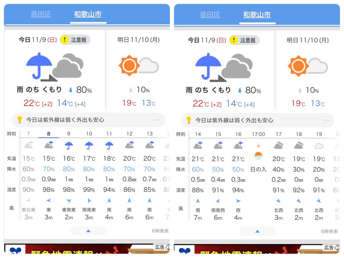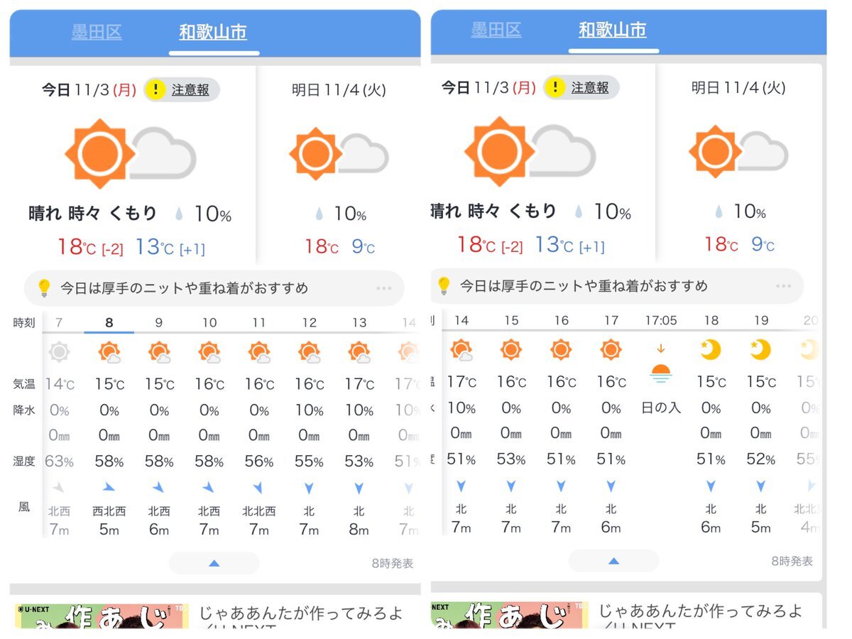みなさま、おはがんて🐾(˶ᐢᗜᐢ˶) 11/3(月・祝) 【岩手県盛岡市の天気】 天気予報 雨のち曇り 現在の気温 7℃ 最高気温 11℃ 最低気温 4℃ 降水確率 am50% pm20% 風向き 北風 風速 5m/s ⚠️雷注意報 ⚠️強風注意報