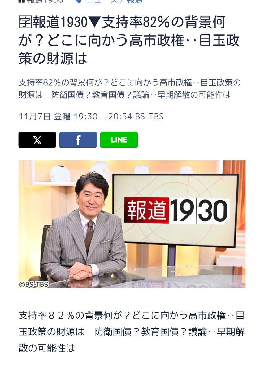 こんばんは ホラッチョ高市 ch #報道1930 今夜も高市 高市内閣高支持率のなぜ? 佐藤千矢子・田崎🍣他 来週月曜日10日もホラッチョ高市 国会論戦と大阪選挙区の今 後藤謙次氏出演 ○今夜の裏 深層 宇露情勢 筑波大東野篤子教授他 橙 熊被害過去最多 BS11 21時~ 老後の生活 60で迷わないために pic.x.com/PdsKXwiv1M x.com/B6VECcNetVjoam…