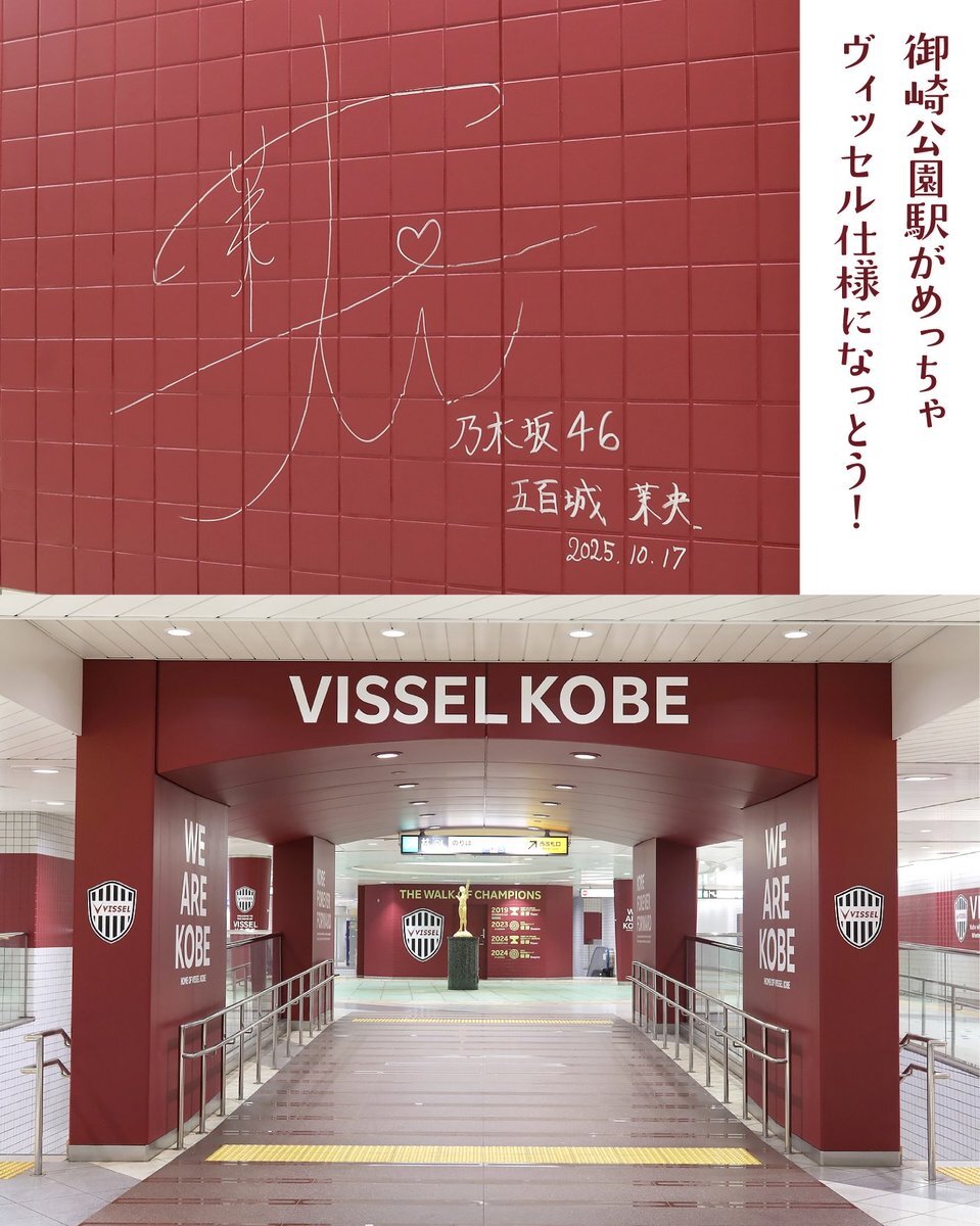 🎊 お披露目 ✨ ノエビアスタジアムの最寄り駅、御崎公園駅がヴィッセル神戸仕様に! 神戸が「30周年記念 新ラッピングお披露目式」を開催。神戸市出身の乃木坂46・五百城茉央さんも登壇し、テープカットを行った。 pic.x.com/Tm8Ueu1hXN
