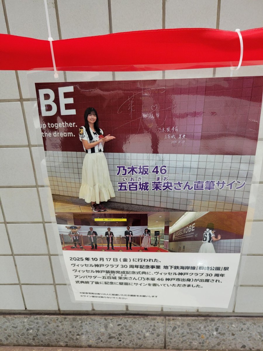 返信先:@GoalJP_Official御崎公園駅が30周年仕様ラッピングでドレスアップ!乃木坂46・五百城茉央さんのテープカットで華やかお披露目。神戸の熱狂が駅まで広がる—サポーターの胸アツ、君も感じる?