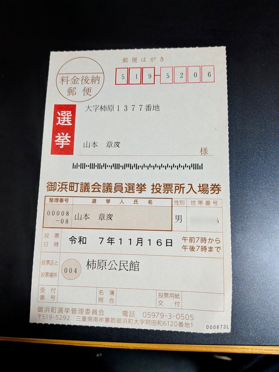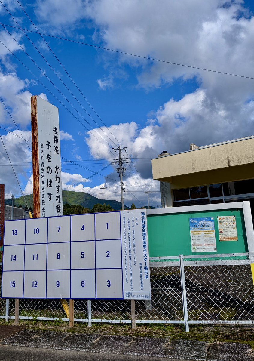 2025.11.6 #御浜町議会議員選挙 投票所入場券🎟️郵便はがきが届き 町内78ヶ所に選挙ポスター掲示板が設置されました。 11月11日(火) 1並びの日 選挙戦突入!であります🫡 お借りした #ヨシクマ新聞📰さん記事の通り 定数10に対し、11陣営が立候補届出書類📄 事前審査を済ませています。 pic.x.com/NFvMYwX9mg