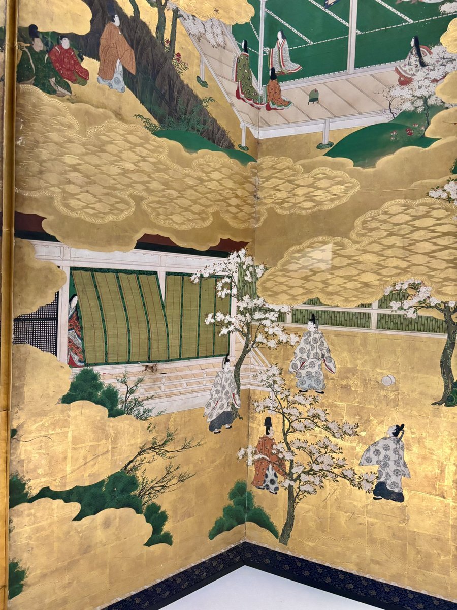 徳川美術館の源氏物語絵巻展に行きました。素晴らしかったです! 鮮やかな色遣い、華麗な筆致、大胆な構図、背景の省略の上手さ、建築の描き方、一筆でバチッと決まった横顔の輪郭の美しさ、これは国宝ですわ。 特別展示室の前で1時間くらい待ちました(平日)が最前列で見るためならしょうがないな。 pic.x.com/v0LLfmvWq4