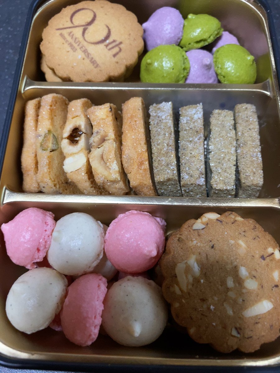 徳川美術館のクッキー(カフェタナカのやつ)きた。缶が強そうで格好いい。ビスキュイ・ミソ・ルージュっていう八丁味噌のクッキーとクロッケ・オ・ザマンドっていうアーモンドとヘーゼルナッツとピスタチオが入ったクッキーが特に好きかも。 pic.x.com/uI2c3xPjWD
