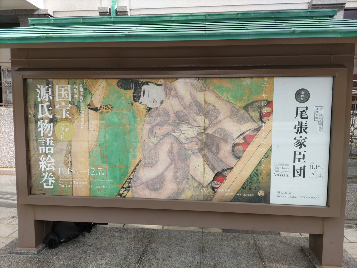 今日は、徳川美術館で源氏物語絵巻拝観!10時10分頃着いたら、入館まで約20分。常設展他を早めに抜けて、奥の絵巻展示列に30分待ち。後ろフリーだと待ち無しだが、前列で観ないと意味ないと思われ。 pic.x.com/WpbxkwZUO9