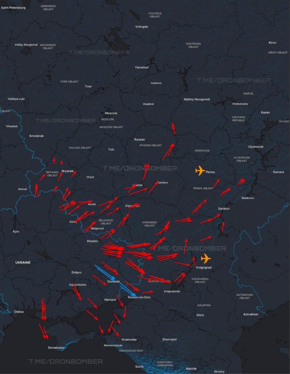 BREAKING: Ukraine just launched a large suicide drone attack on Russia. The airports in Volgograd and Penza have been forced to shut down operations.