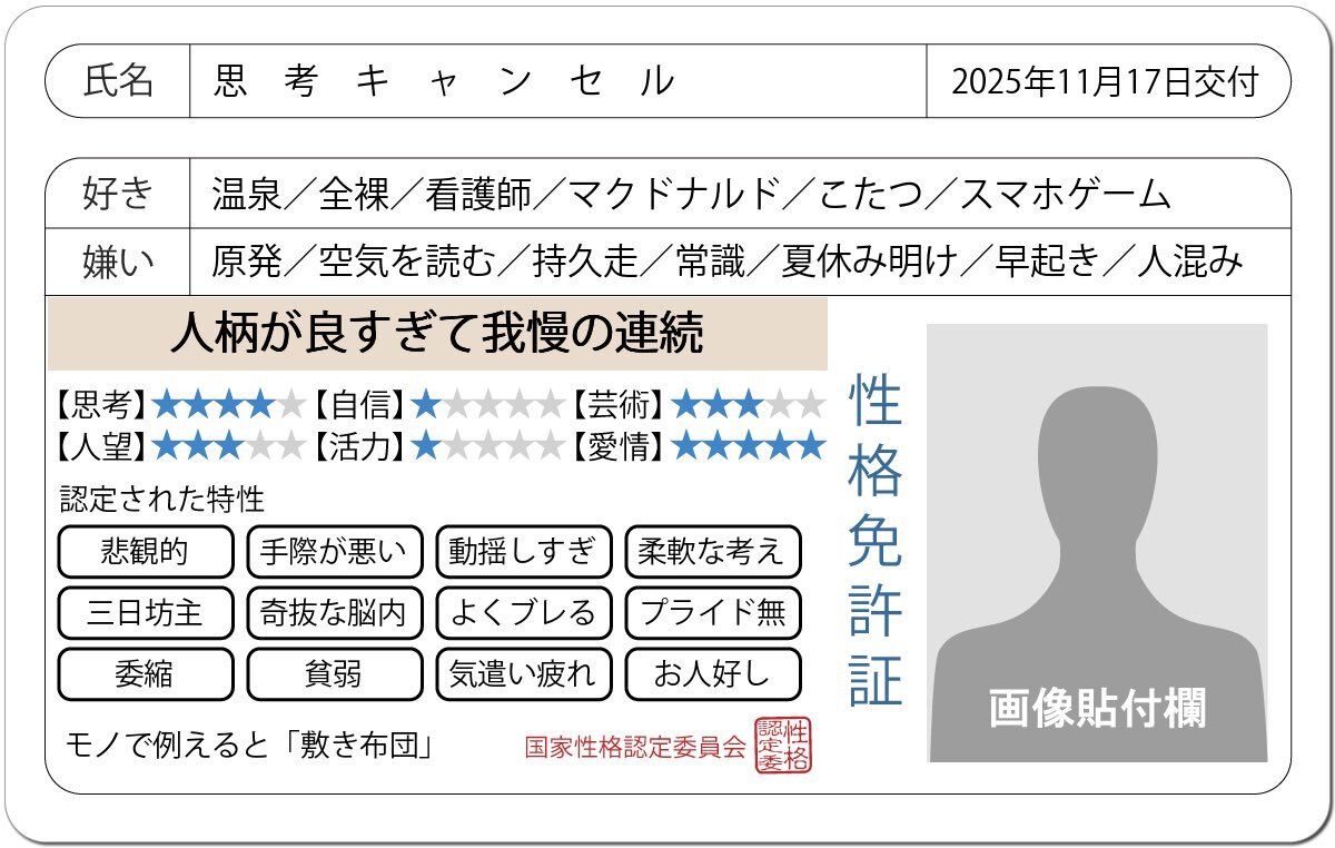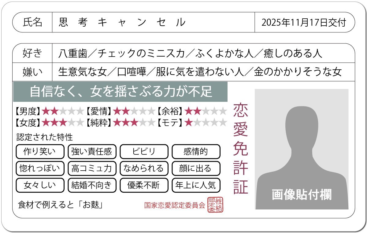 恋愛免許証/性格免許証/性格の履歴書 pic.x.com/dFvZFdmX1x