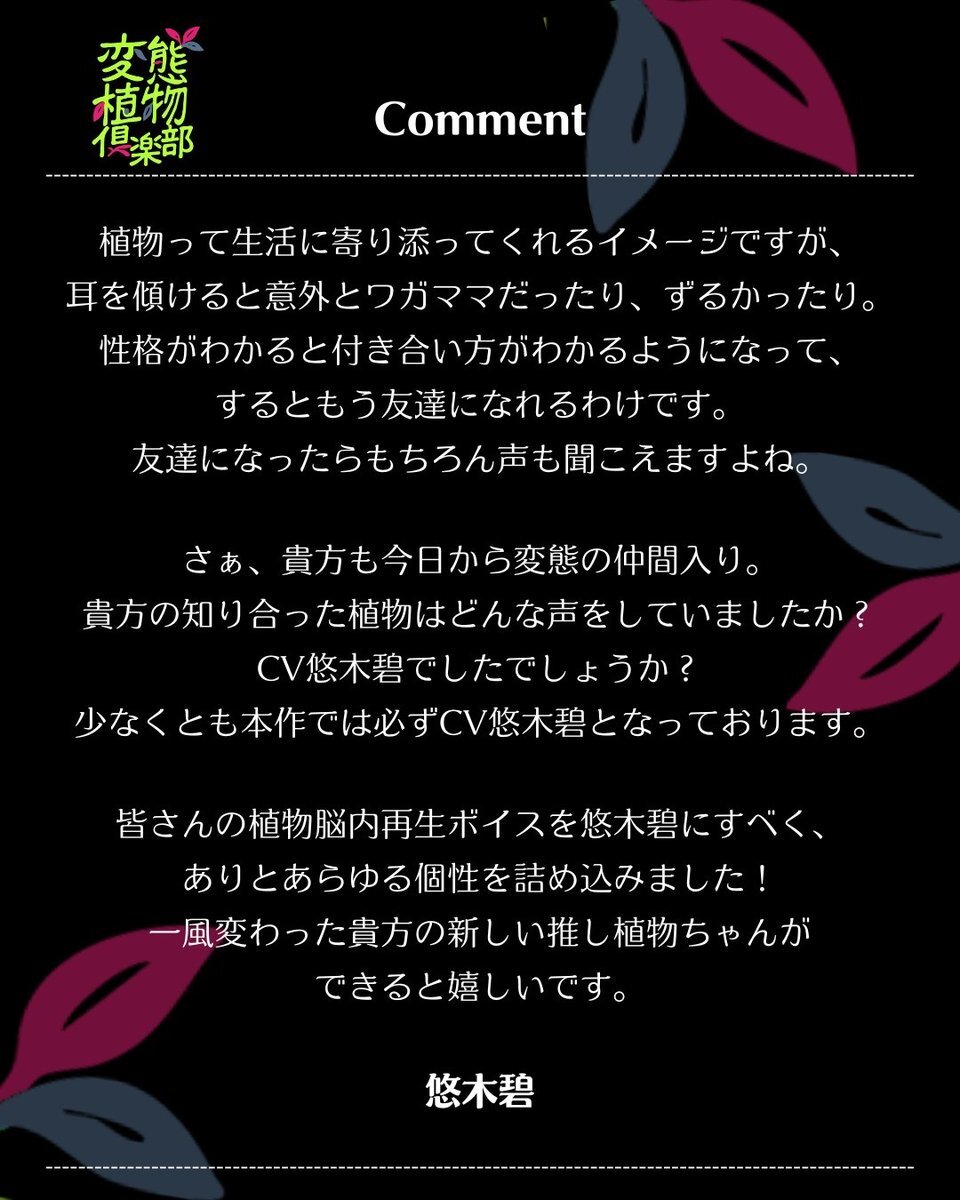 返信先:@oricon_anime_他2人悠木碧さんの「変態植物」声優起用、めっちゃハマりそう!あの独特な世界観に碧さんの声が加わったら、絶対クセになるわ。「変態の仲間入り」呼びかけ、笑った😂 コメント楽しみにしてる!🌿✨ #変態植物
