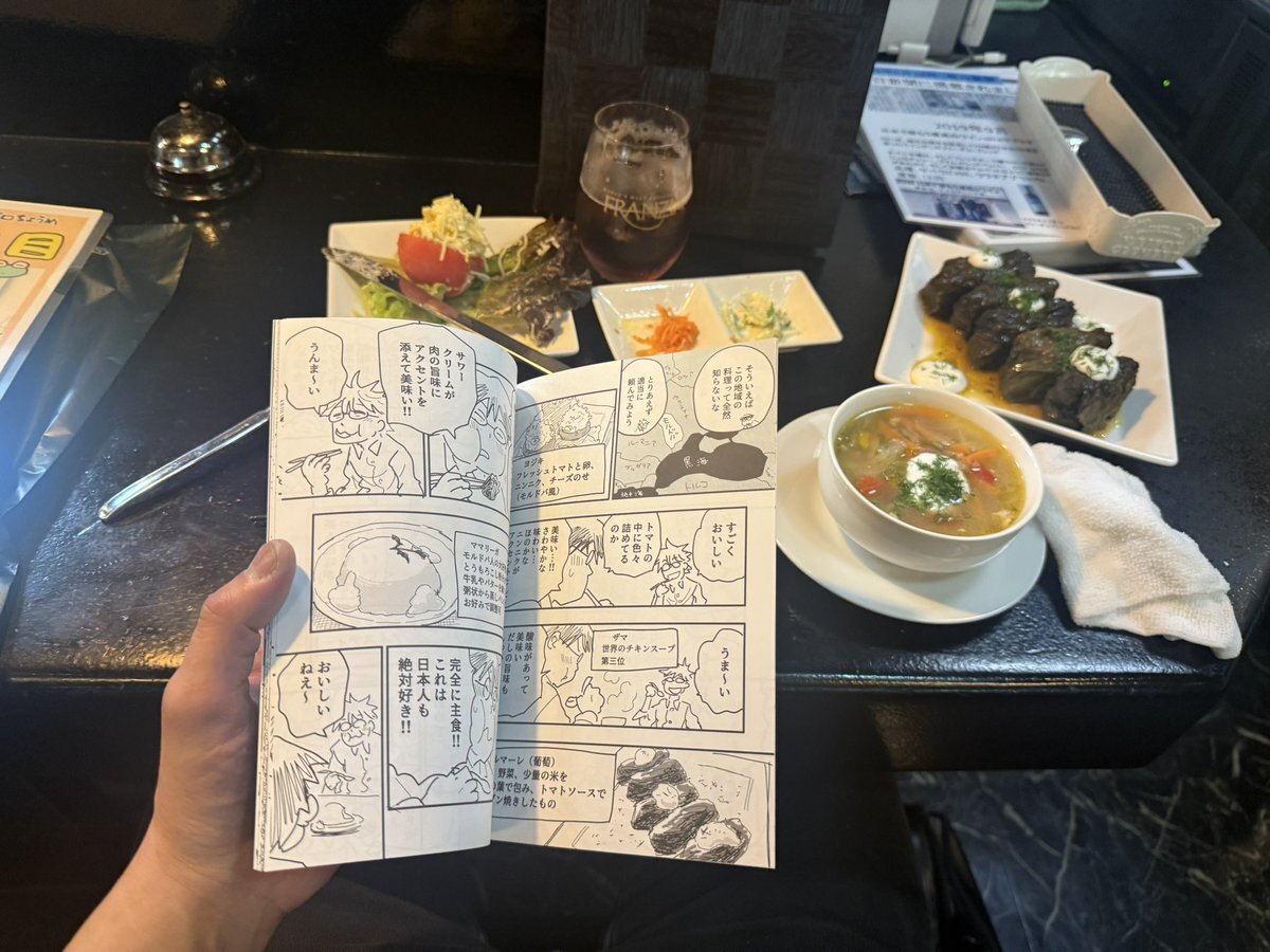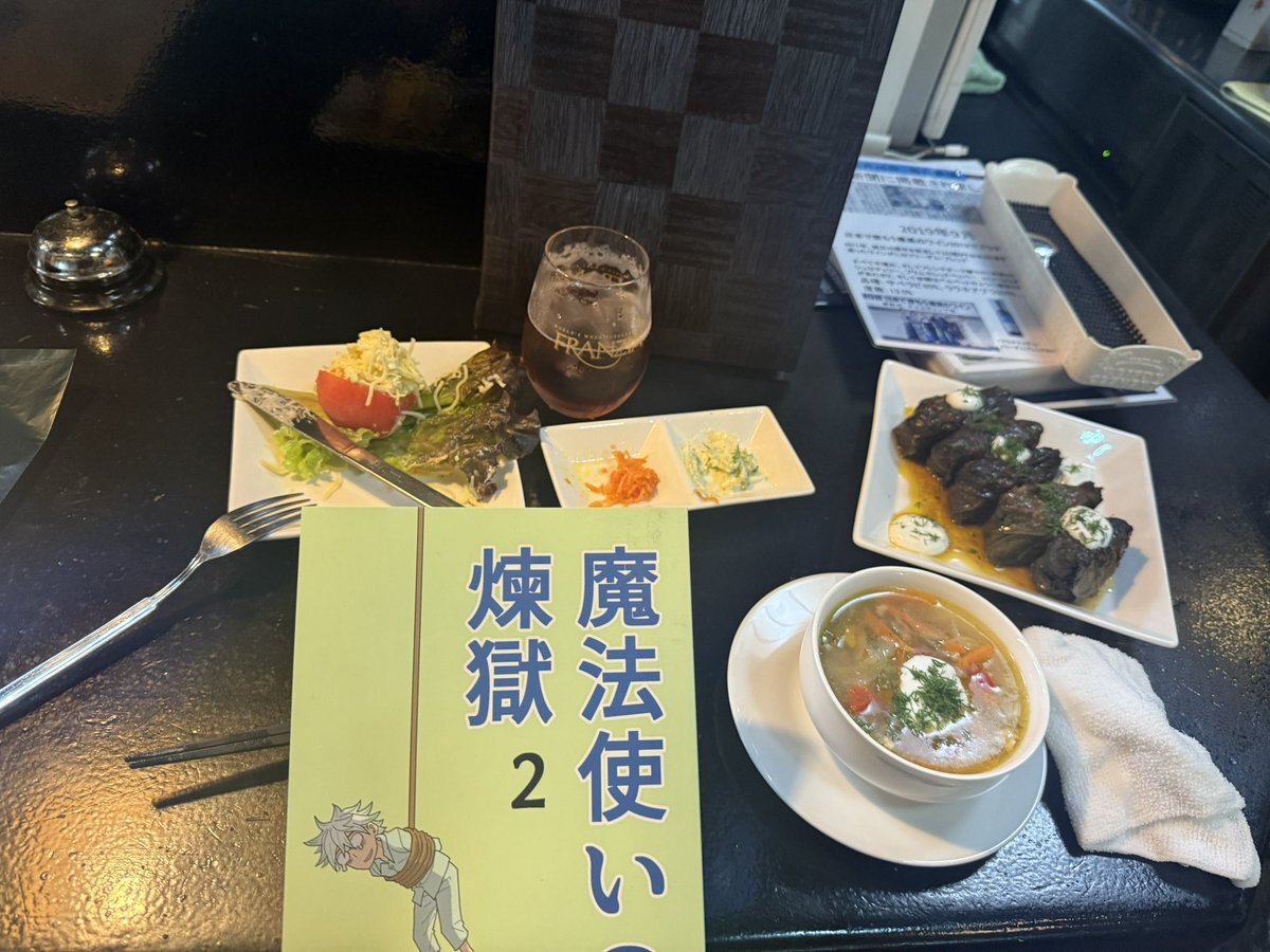 @nekogaeru水上せんせーの新作 魔法使いの煉獄2 で出たNOROC行ってきた。 料理人としての味と知見が広がったでござる。 ヨジキ🍅サルマーレ🍇 美味ぁぁぁぁぁぁぁぁ‼️ 風巻さんが唸るのもうけあい。 ブリヌイとか他のも食べたかったし、島らいおんはまた次に… #惑星のさみだれ pic.x.com/TXzkiGwOHD x.com/nekogaeru/stat…