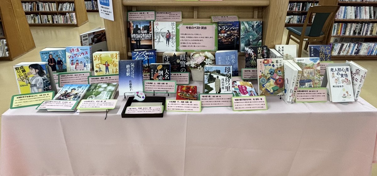 今年のベスト貸出📕 今回は今年貸出しの多かった本をご紹介します。まずは小説から。未読の本があったらこの機会にぜひ手に取ってみてください。 #香焼図書館 #香焼町 #群よう子 #浅田次郎 #池井戸潤 #今野敏 #成瀬は天下を取りにいく #佐藤愛子 #東野圭吾 #雫井脩介 #原田ひ香 #堂場瞬一 pic.x.com/nzI7OxJVTx