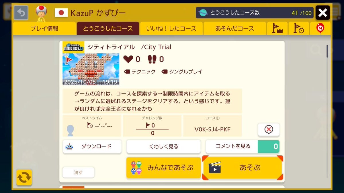 #スーパーマリオメーカー2 のコース 「シティトライアル」 ID v0k sj4 pkf エアライダーのシティトライアルをマリメで作りました。 選ばれるステージには、スピランやボスバトルなど4つのジャンルがあり、使いやすいアイテムも異なります。 戦わずして完全王者にもなれます。 ぜひ遊んでね😆 pic.x.com/kCj6icn0vS