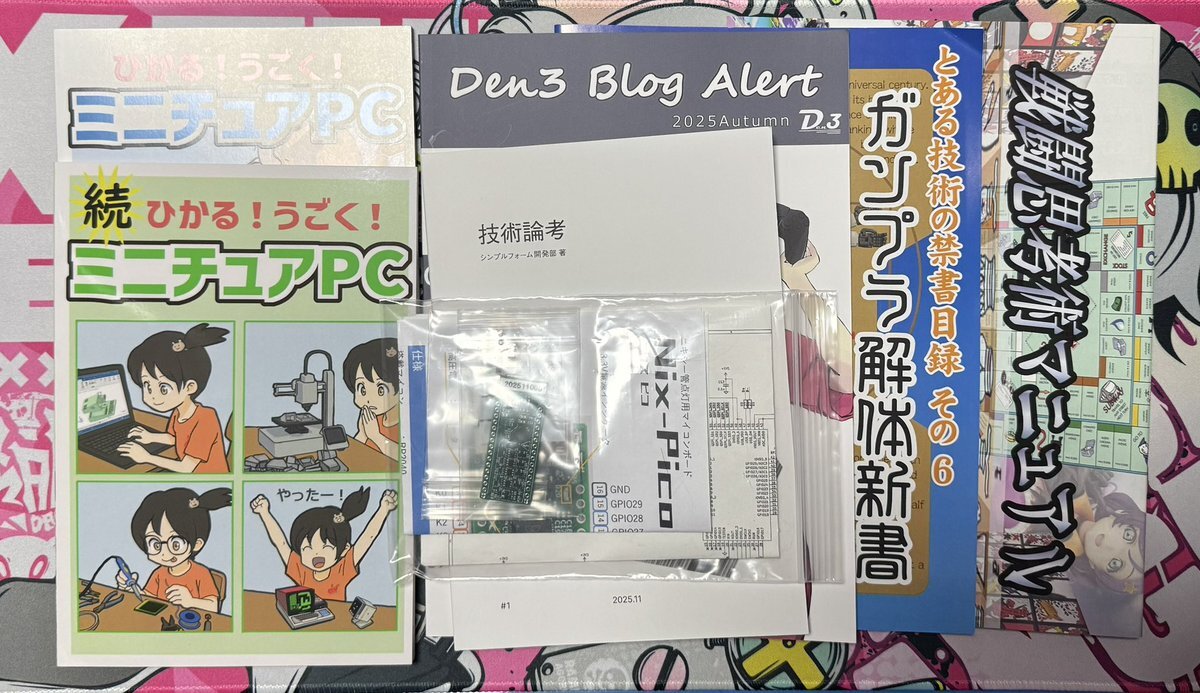 技術書展 紙本はこれだけで後は全部オンライン版 頒布キットはRP2040+ニキシー管用高電圧回路内蔵した謎基盤😃 ニキシー管 実家にまだ眠ってるはずだけど場所が分からね〜💦 今から新品入手は難しいだろうね pic.x.com/WrZmMMN0M6