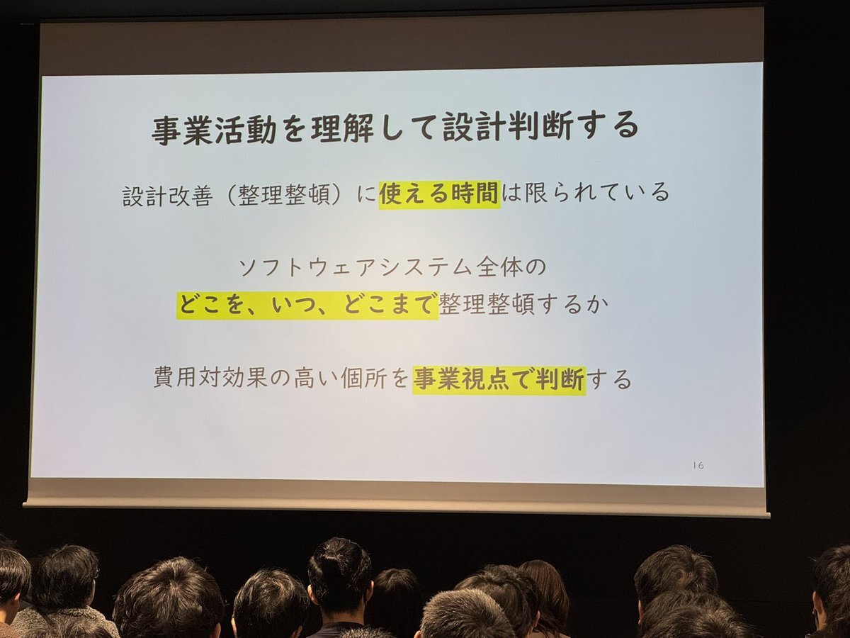 いわゆる技術的負債の解消をする際、 「一気に全部!」ってな流れではなく、部分的にリアーキする前提で、「じゃあどこから?」の判断軸は事業よね #アーキテクチャcon_findy pic.x.com/KUly3ZoGLM