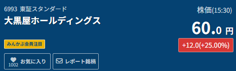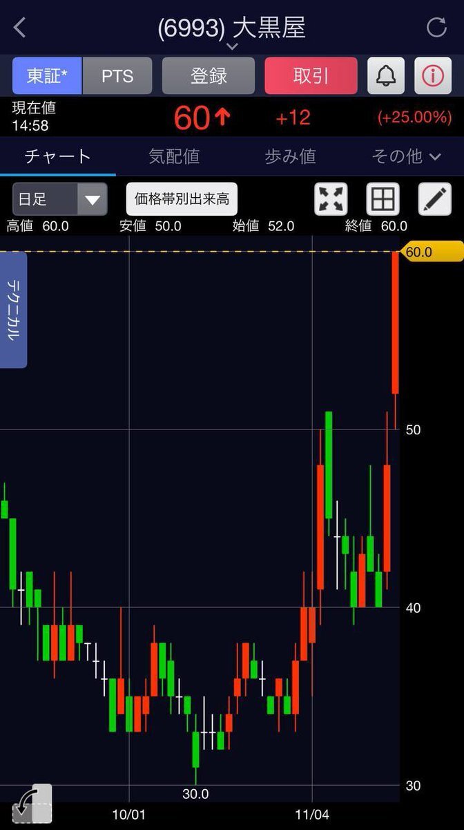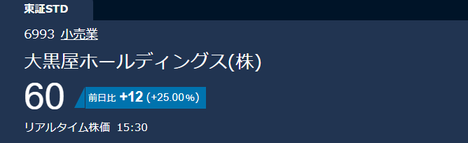 6993:大黒屋HD ""ハーフバガー達成""です。 日経平均株価の大幅暴落など 小型の銘柄には関係ないと言いましたよね? 【"黒瀬をフォロー"して紹介銘柄だけ仕込む】 これが株式投資家として生き残る答えです。