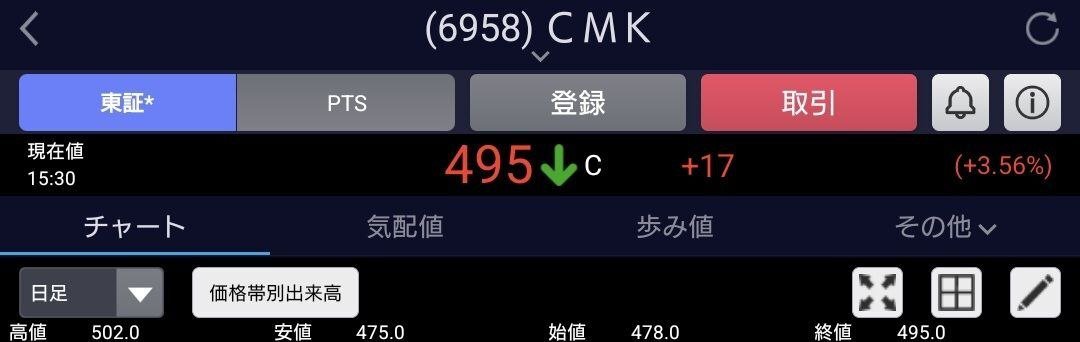 今すぐ仕込みなさい。 【6958 日本CMK】 現在株価は478円 明らかに割安な銘柄。JX金属 INPEX ソフトバンクグループ を保有している人は今すぐ乗り換えを検討しなさい。俺の予想ではこの日本株は4桁までぶっ飛びますよ。皆さんも48,000円から100万を狙えます。 必ず「イイネ」で保存すること。