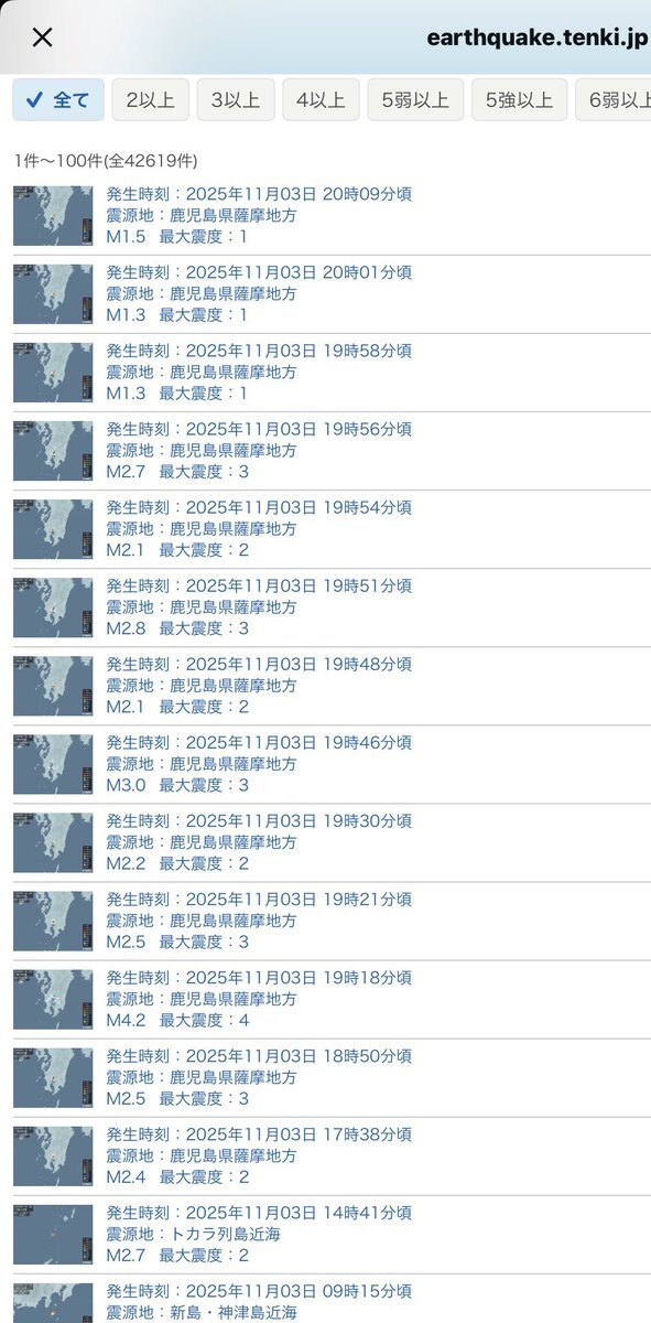 #地震予知 #南海トラフ →💣 噴く方かと思いましたが、、、 揺れた方でした。 秋🍂があっと言う間に行ってしまいましたね〜😢 我慢せずに、ヒートテック出しましたわ。 持ち出し袋の中身を、冬バージョンにしなくては!!! 、、、桜島噴くかな? 11/1 20:00 ←✍️ 2日 pic.x.com/DgqZiNv4OA x.com/wni_jp/status/…
