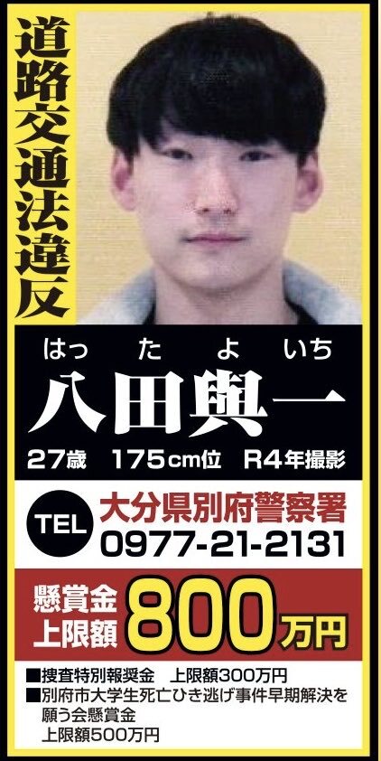 【警察庁指定重要指名手配被疑者 八田與一】 別府市において発生した大学生2名に対する殺人等事件の指名手配犯八田與一の情報を求めています。見逃さないで、この顔にピンときたらすぐに通報! 別府警察署(0977-21-2131) #大分県警察 #指名手配 #別府願う会 #八田與一 pic.x.com/5GDAo8YfmS