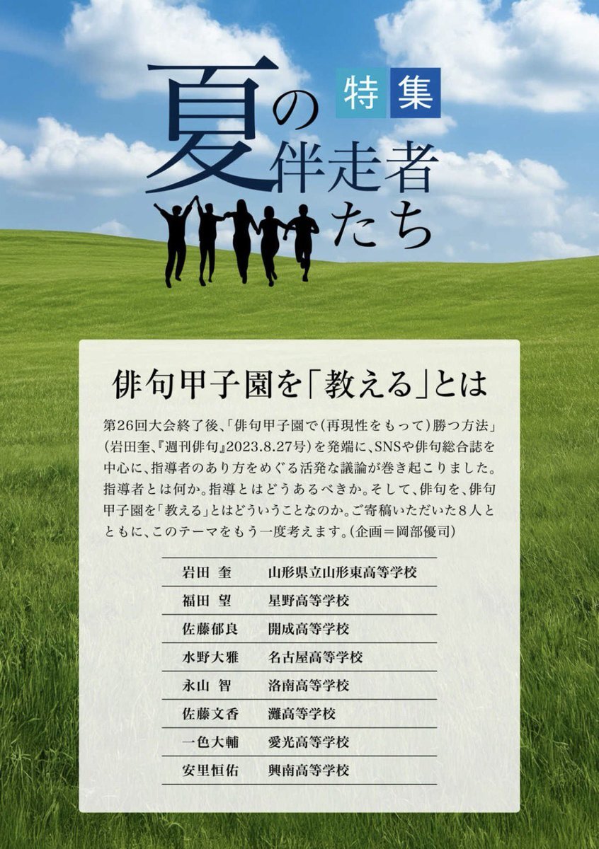 【第28回俳句甲子園公式作品集】 💎特集💎 「夏の伴走者たち〜俳句甲子園を教えるとは〜」 指導者とは何か。指導とはどうあるべきか。俳句を、俳句甲子園を「教える」とはどういうことなのか。改めてこの問いに向き合います。 #俳句甲子園 pic.x.com/za6SyS4ja2