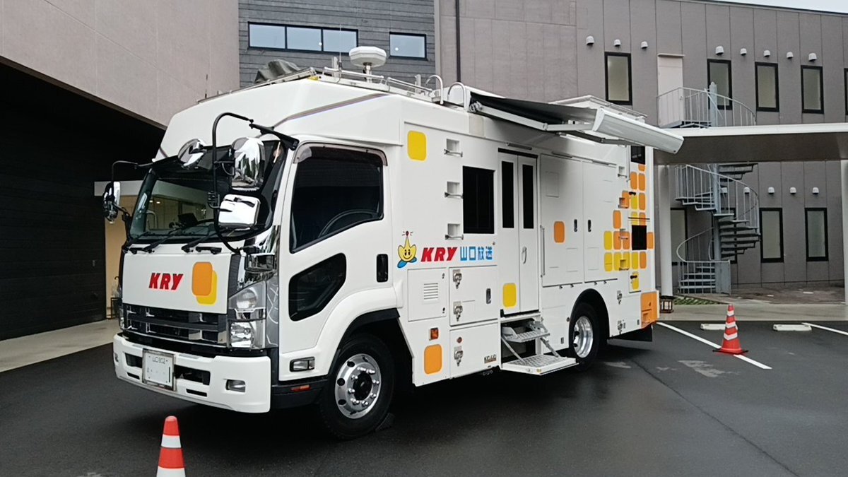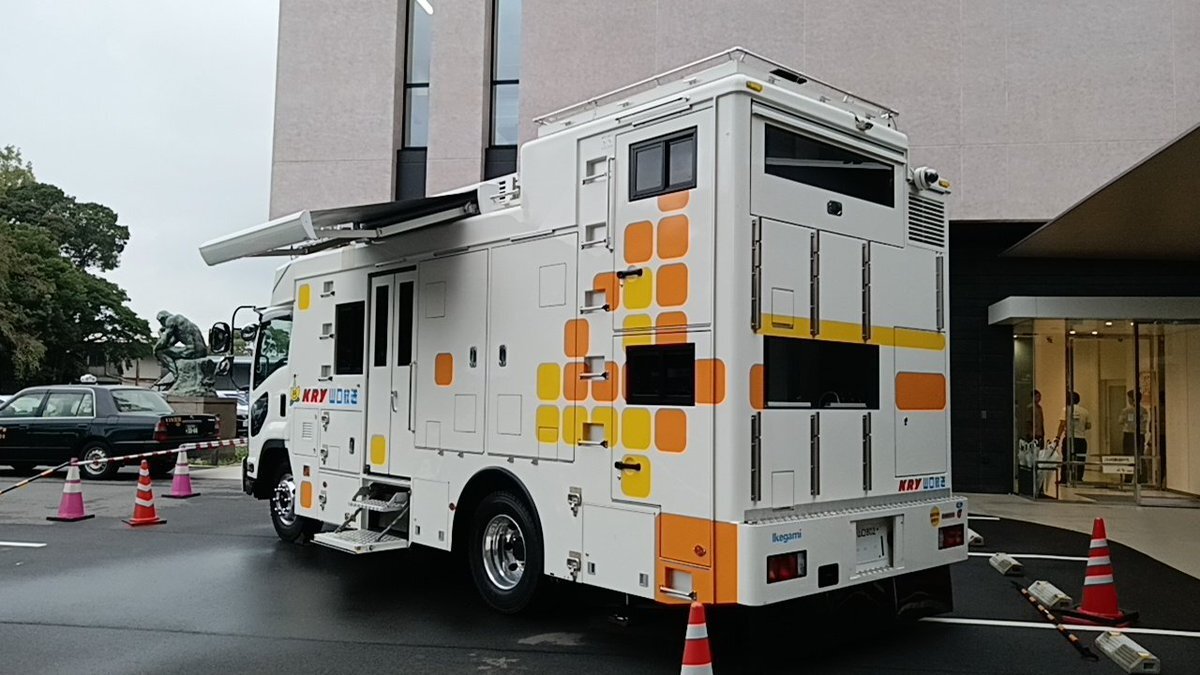 10/4土曜のみの開催 KRY山口放送開局70周年記念 ラジフェス 2025 屋外は立ち入り可能ゾーンは撮影規制は無かったので 展示していた中継車「さわやか号」(いすゞフォワード/京成コーチ)を撮影 ※イラストの「さわやか号」のフロントマスクが何故かキャンター風だった #中継車 #さわやか号 #いすゞ pic.x.com/CecbwmTaX8