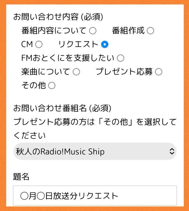 🔶秋人さんラジオ・火曜日🔶 #FMおとくに #秋人ラジオ 【秋人のRadio! Music Ship】 毎週火曜日12時〜13時28分 (同日再放送)19時〜 🔸次回28日は 《この秋聴きたいバラードソング》 🔸リクエスト🉑フォーム↓ fm-otokuni.com/message/ ⚠️締切は放送当日朝7時   (↓入力例😊) @akihito1228 pic.x.com/x9VJtRyhNS