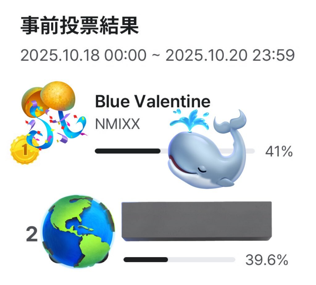 10/20🗳️Mnet Plus🐳NMIXX M COUNTDOWN 事前投票 【NMIXX - Blue Valentine】 🔥本日10/20(月)23時59分締め切り ずっと接戦が続いています🔥 ⚠️1位終了+スコア差が必要です MAMA投票と一緒にエムカの事前投票もお願いします🙇‍♀️🩵