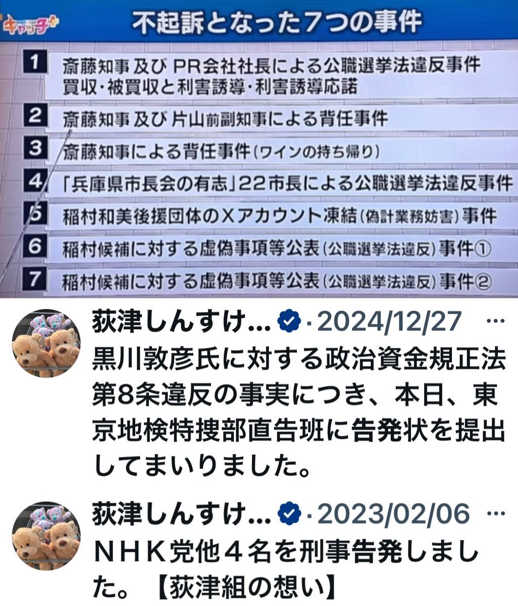 荻津アンサー 何で兵庫県知事関係告発は1年以内に不起訴と結果出たのに 組長告発の注目もない 黒川敦彦あたこく政治資金規正法告発 立花黒川選挙自由妨害告発 は結果不明なの? 選挙自由妨害なんて難しい内容でもないのに2年以上も結果不明は謎過ぎ 起訴猶予も黒川が先に言わなければ隠してたの? pic.x.com/CCpavdOtEZ
