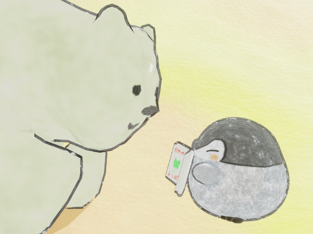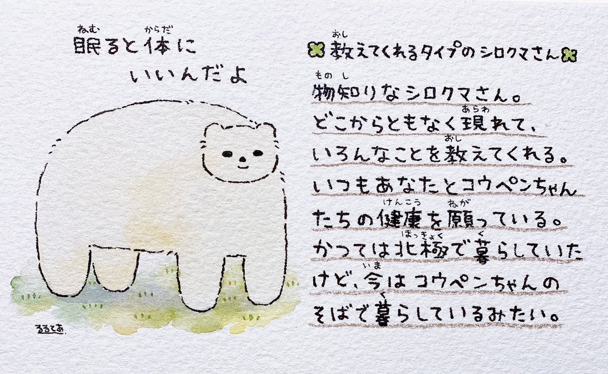 🐧これ、シロクマさんに、あげる~。ぼくが作ったよつば図鑑なんだよ。 🐻‍❄️それはすごい。とってもうれしいよ。 教えてくれるタイプのシロクマさん、お誕生日おめでとうございます✨私もシロクマさんのように優しく伝えられる人になりたいなぁ☺️ pic.x.com/PPBc92us4z