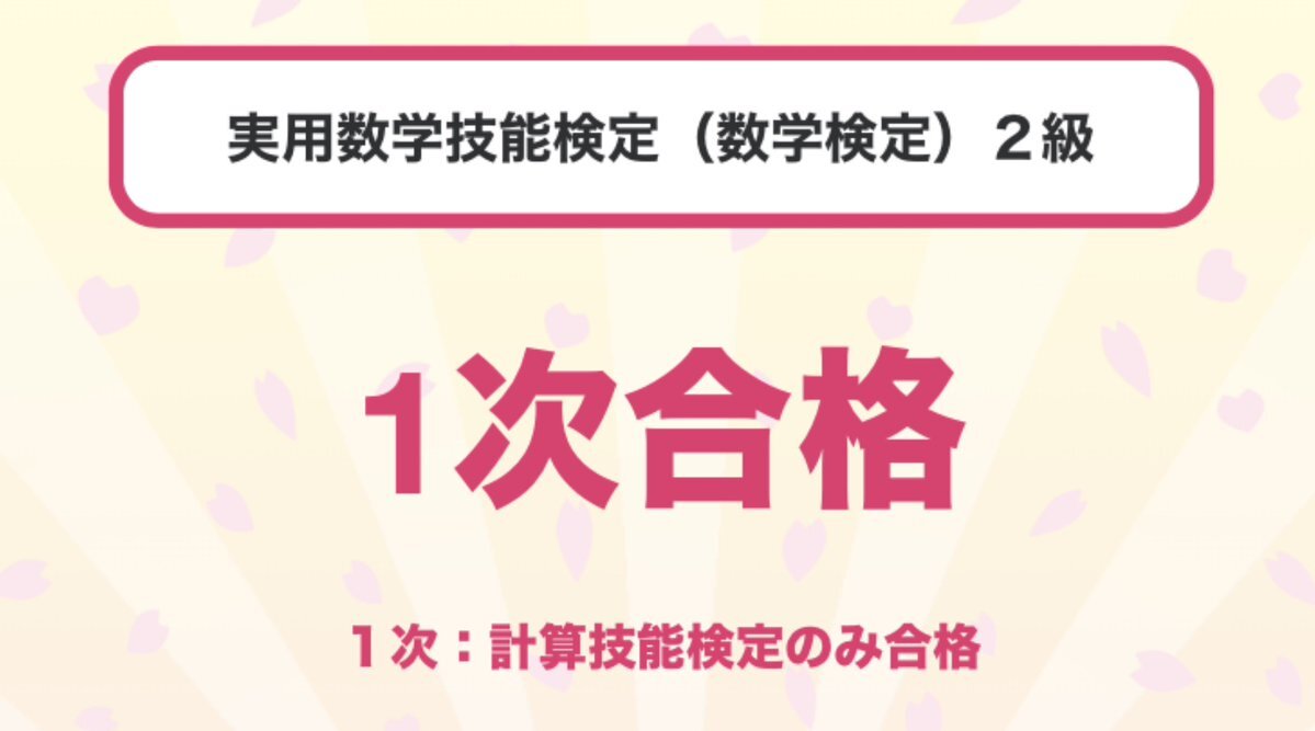 この前、数学検定2級を受けたのですが、2次試験は落ちて、1次試験だけ受かってました。またリベンジしたいです。 pic.x.com/K60UGNcP5h