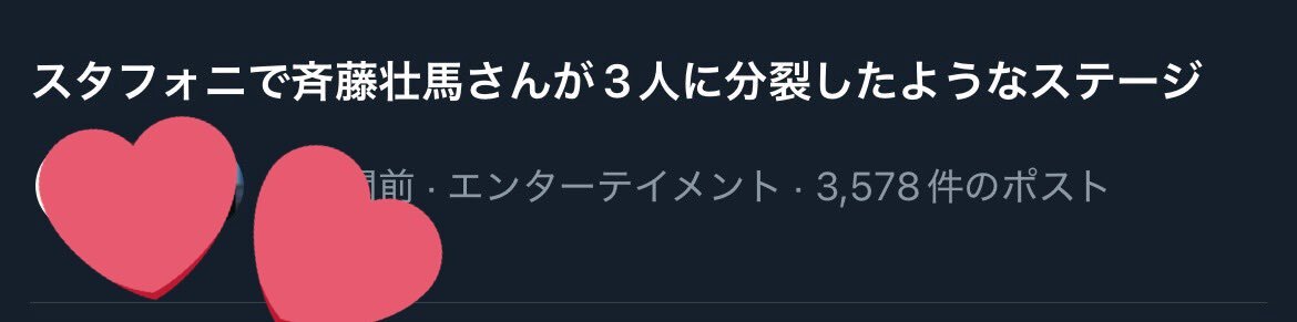 昨日のスタフォニポスト見てて、斉藤さんと壮馬さんに2人に分裂したのは分かった。 さっきチラッと流れていってしまったポストで3人に分裂した、って見えたんですがホントですか? 今さらですみません🙇🏻‍♀️