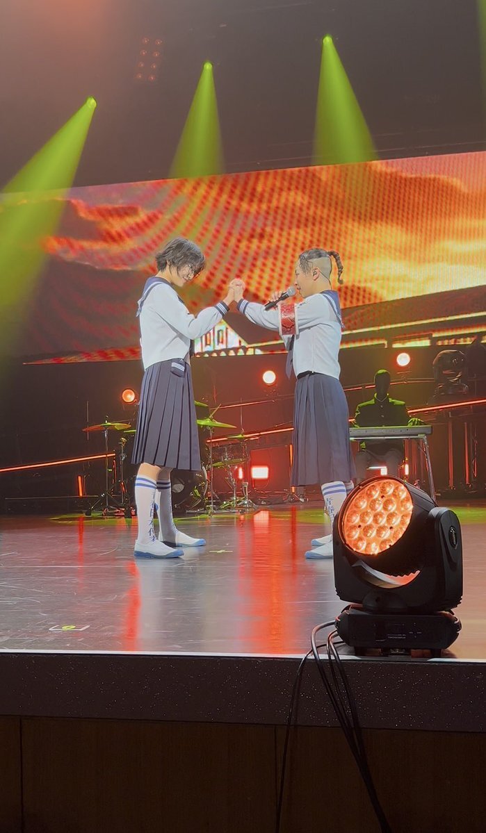 この二人のパートはじゃれあいながら下校している女子高生を見ているようで心がほっこりします‼️癒されるわ〜 広島での一コマ #新しい学校はすゝむツアー #新しい学校のリーダーズ #atarashiigakko #MIZYU #KANON pic.x.com/BUn2CWLf7u